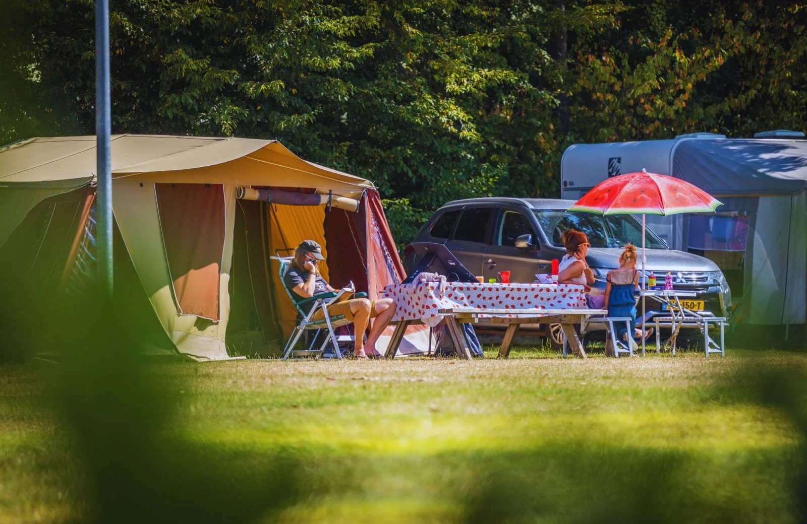 - Kamperen met tent, vouwwagen, caravan of camper, incl. auto