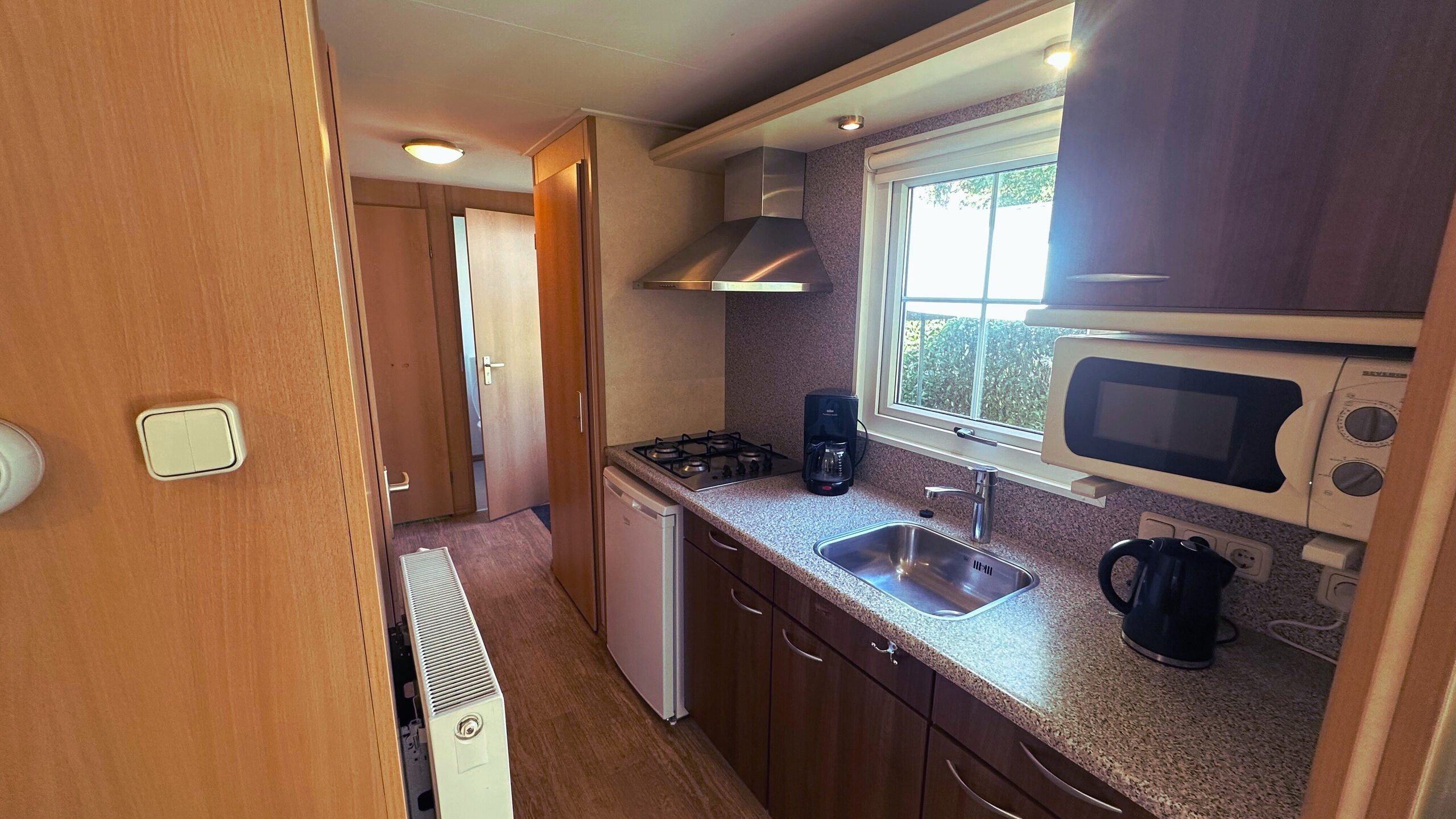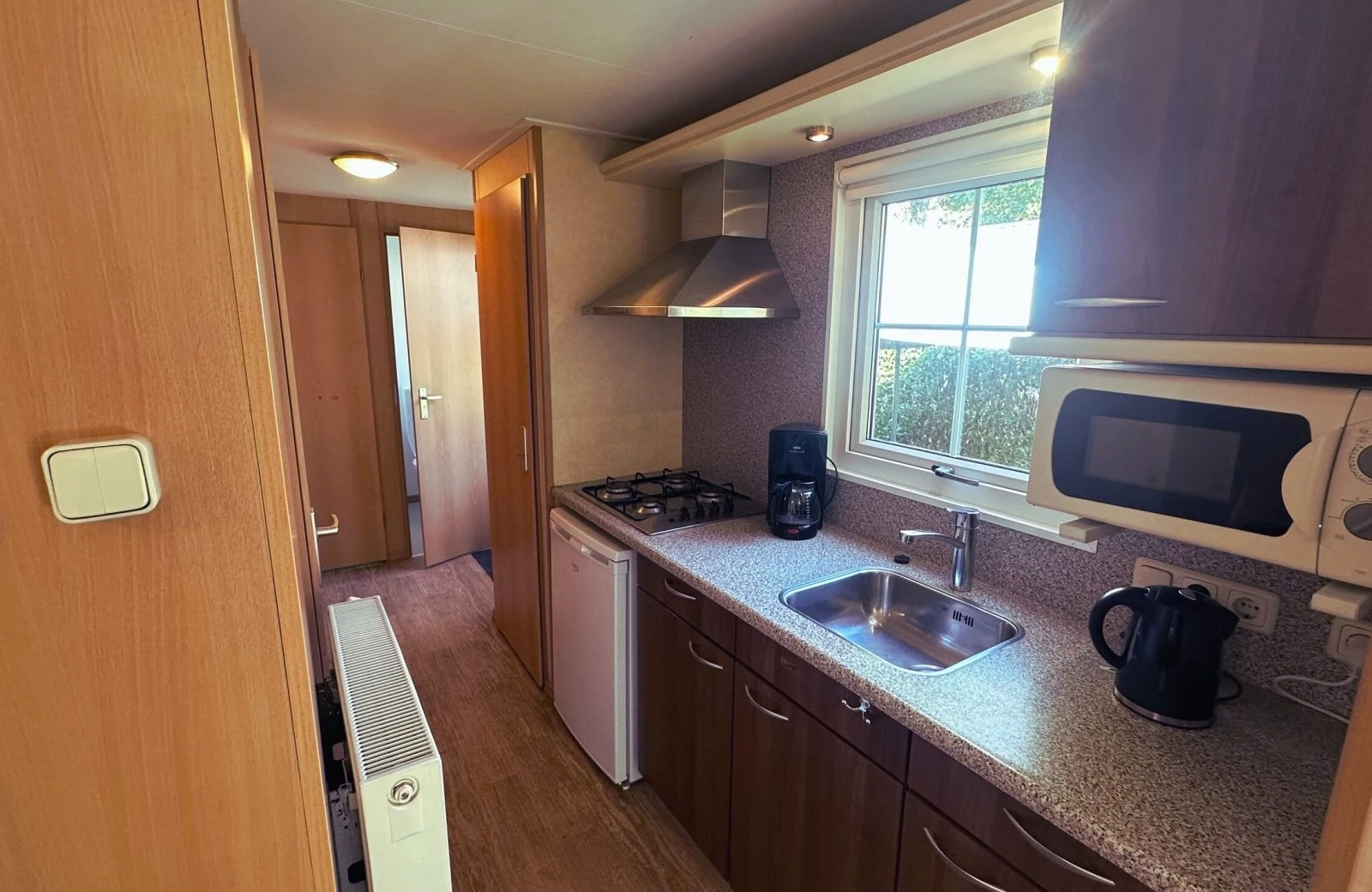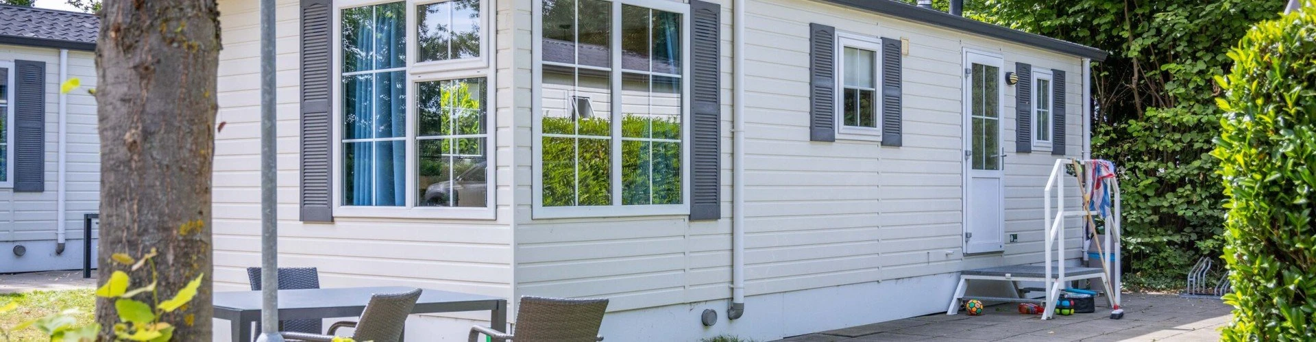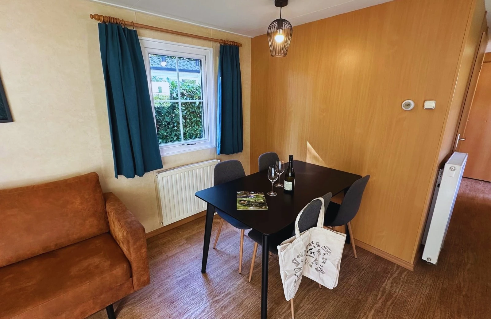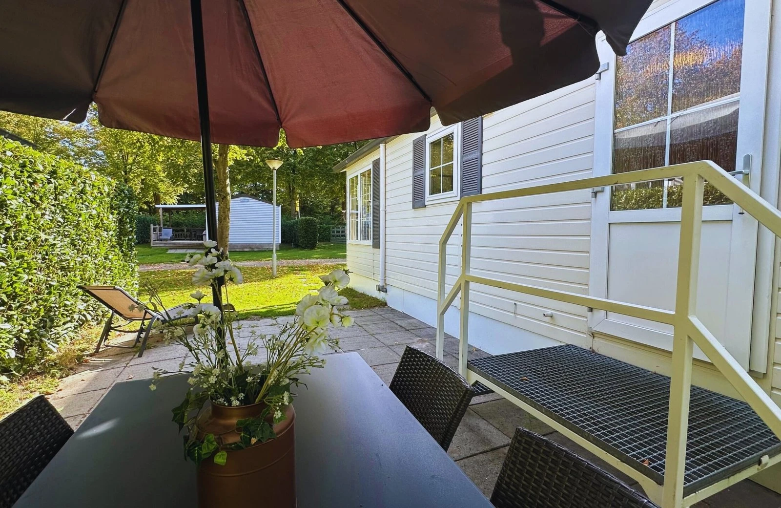 Chalet type D, geschikt voor 4 personen, is gezellig ingericht en profiteert van prachtig natuurlijk licht dankzij de grote ramen. En, raad eens? Die ramen bieden ook nog eens een picture-perfect uitzicht op de mooie natuur. In deze accommodatie geniet je niet alleen van comfort, maar ook van de heerlijke groene omgeving. En bij goed weer start je jouw dag met een kop koffie op het verharde buitenterras met parasol.