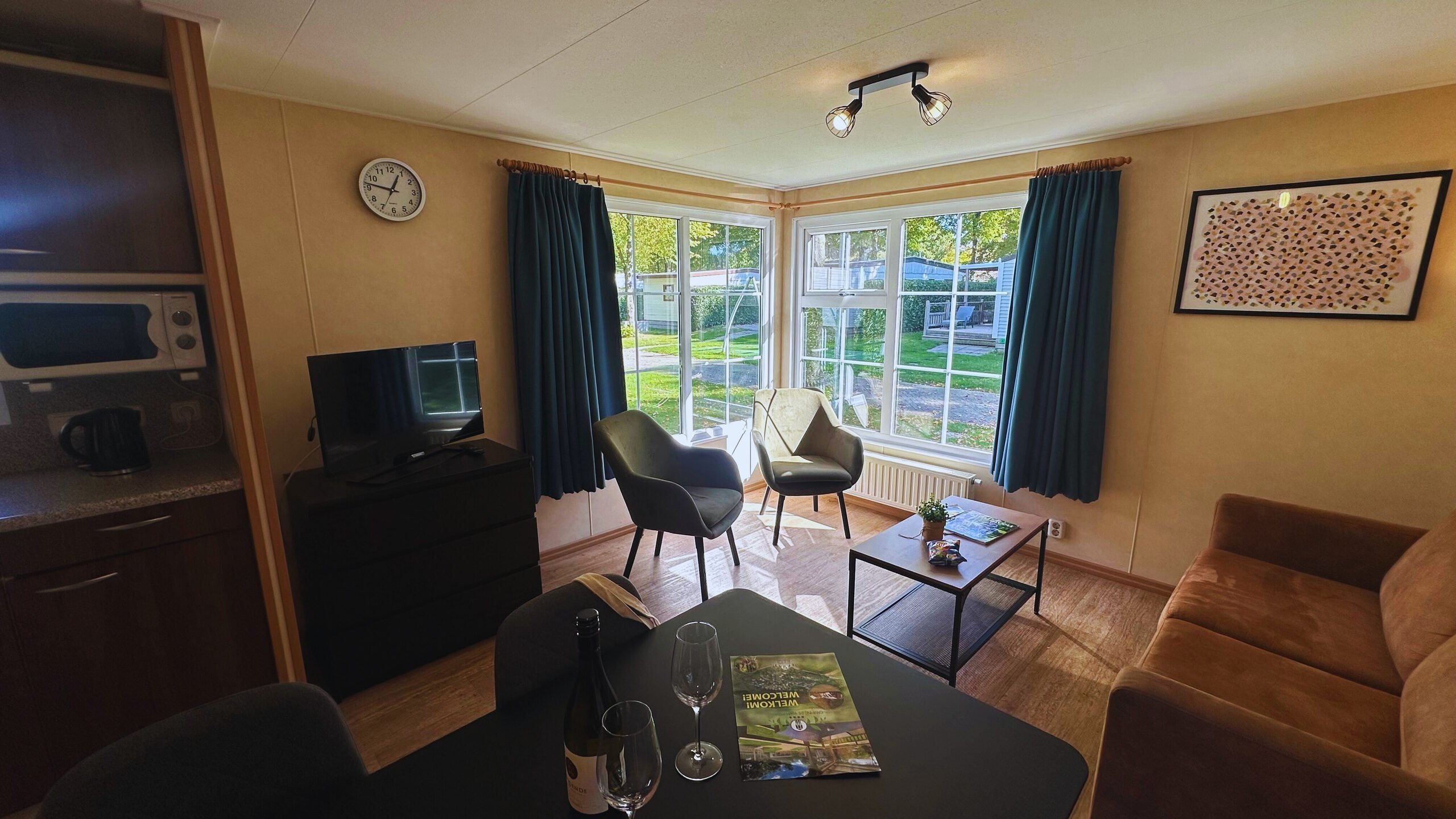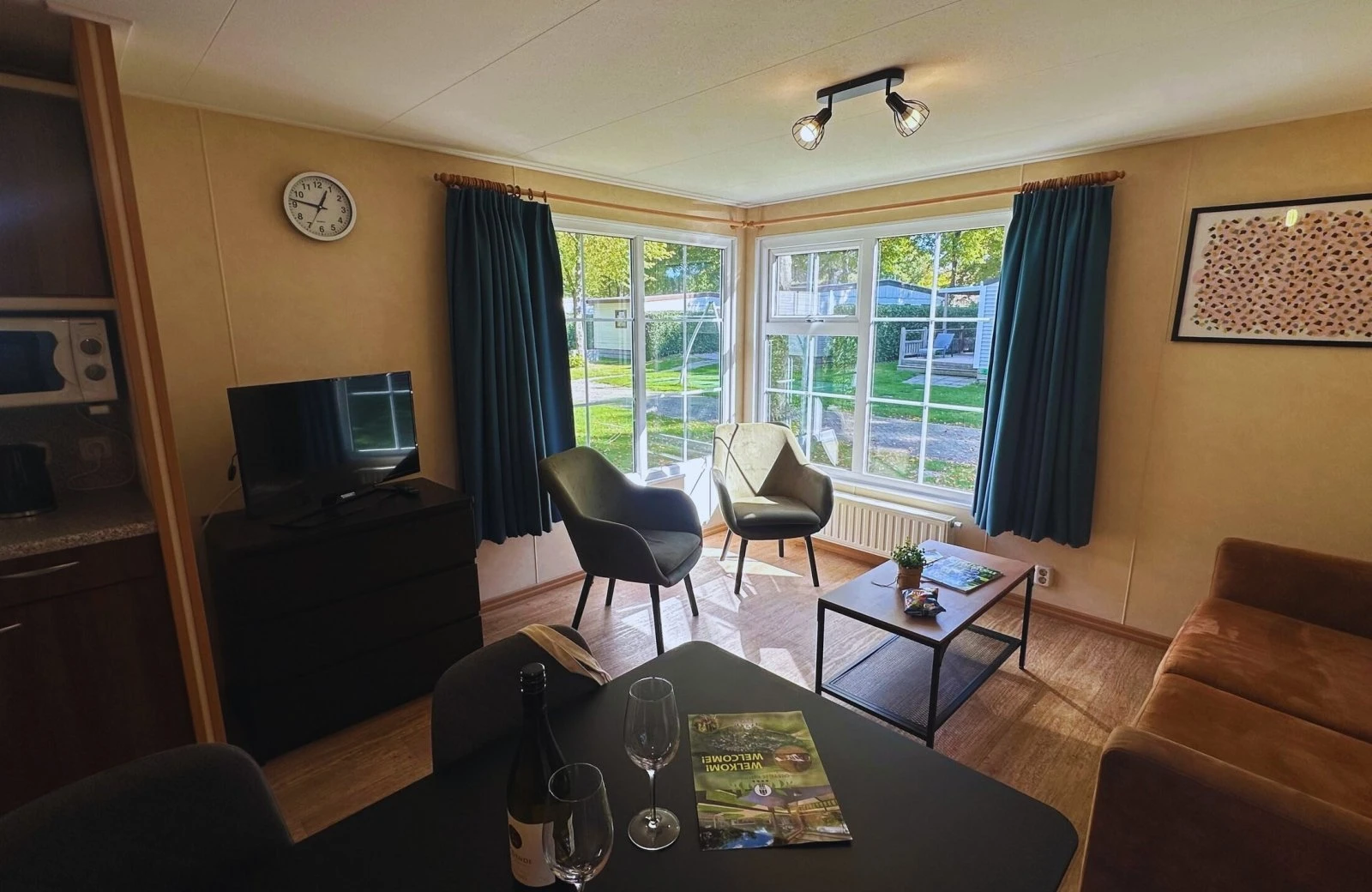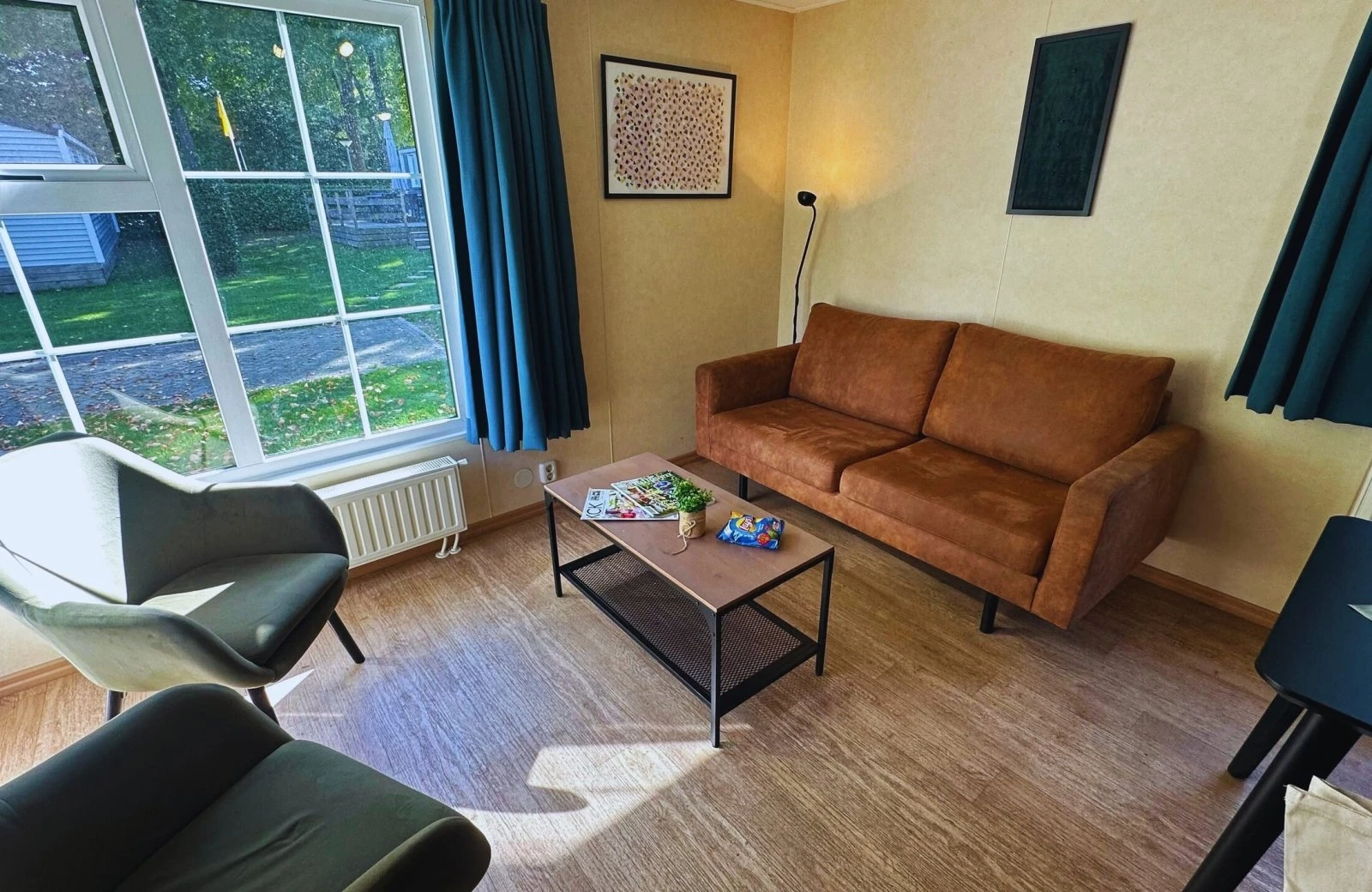 - Gezellige woongedeelte met bank en 2 luxe stoelen