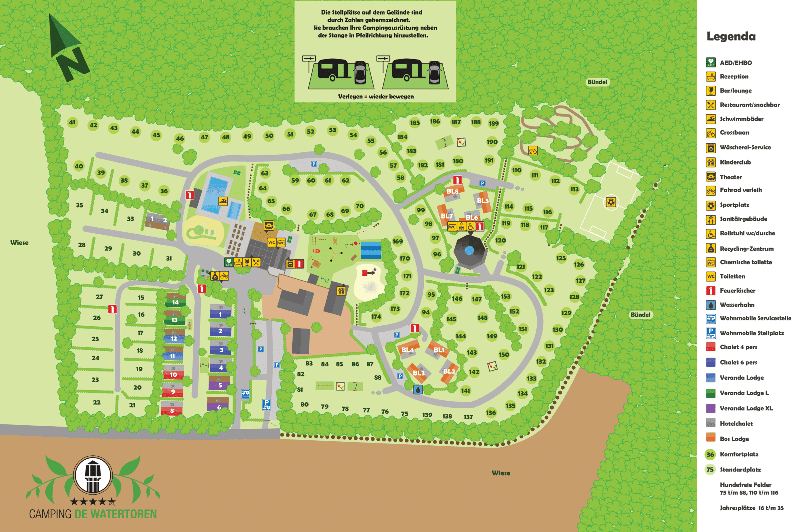 Bekijk hier de plattegrond van Camping de Watertoren!